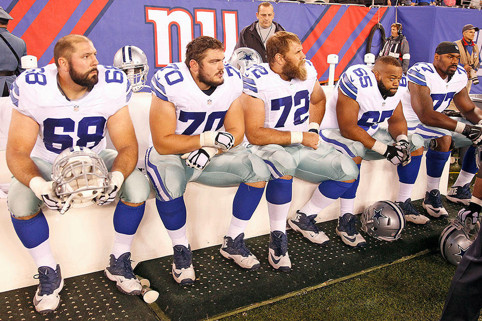 1. Dallas Cowboys – Tyron Smith, Ronald Leary, Travis Frederick, Zack Martin, Doug Free