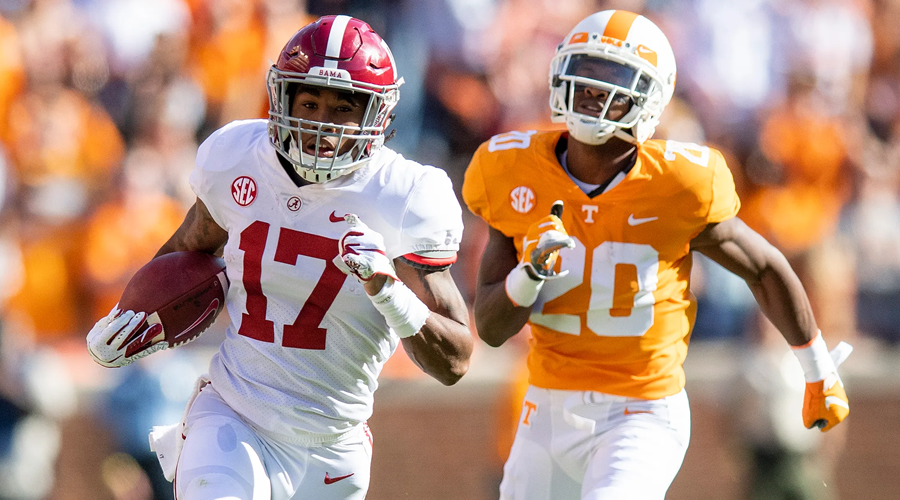 This is not the Alabama defense of the early 2010s that held opponents to single-digit points on a regular basis, but it’s also certainly not the one from the last year, that got lit up for 94 combined points by their two biggest rivals in LSU and Auburn. The two teams that gave the Crimson Tide defense a lot of issues were wide open spread offenses – Ole Miss put 48 points up against them and Florida in the SEC championship game 46 (funnily also a combined 94). However, in the ten other games they have played, they allowed an average of just 12.4 points per contest. They play a lot three down-linemen plus one of their OLBs standing up on the edge and they have two very rangy linebackers behind that. Bama gives up an average of 20 first downs to their opponents (tied for 44th in the country), but they create a lot of negative plays, with an SEC-high 6.4 tackles for loss per game, to go with 34 sacks and 22 takeaways in 12 games. Nick Saban and DC Pete Golding run more split-safety looks than I can remember in a while, because while they do have arguably the top corner in the country in Patrick Surtain II, the rest of their secondary can be exploited. And that also makes them vulnerable over the middle on dig routes and attacking the seams, while not doing a whole lot of disguising on the back-end. Ohio State hit Clemson over the top for a 56-yard touchdown to Chris Olave, when they were running a double post concept against quarters coverage – so those safeties can’t really squat on those in-breaking routes either. To not let those downfield patterns develop, the Tide will have to come after Fields, where Christian Barmore has turned himself into a monster at create push up the middle and then you have Will Anderson coming off the edge with ferocious pursuit – so Fields better be careful with holding onto the ball when he gets outside the tackle box.