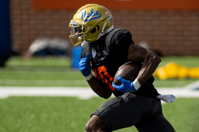 The weight-ins to begin the week certainly didn’t look optimal for Felton’s prospects of lining up in the backfield at the next level, measuring in at 5’8” ½ and 190 pounds. However, the Senior Bowl coaches put Felton with the receivers day one and he looked like he belonged right away, naturally getting in and out of his breaks with sudden movements and great quicks, to go along with effective head-fakes, very. Plus, I liked the way he utilized shuffle steps, to set defenders up off the line. His first two reps of the week went against the top corner there in Oklahoma’s Tre Brown and while the defender broke up the first pass, Felton shook him on a deep out route next, where he really sold the post by stemming and nodding that way. The former Bruin also ran a sick stutter-go for a TD against another really good corner in one-on-ones, as he got Oregon’s Thomas Graham to turn his head all the way around, whilst running by him. And to make sure he beat all of three best CBs down in Mobile, he also got Washington’s Keith Taylor on a double-release slant later on. This guy could be a nightmare on pivot or whip routes. I don’t think Felton actually played a single snap at RB in team drills, but he was very effective as a slot receiver. To only thing I’d say, is that there’s definitely a lot of sauce to his routes, to the point where it will be hard to sustain that in a timing-based passing attack. Yet, he is kind of doing the invert Antonio Gibson transition and it’s pretty astonishing that Felton was named the National Team’s wide receiver of the week, after he had never played the position full-time in college.