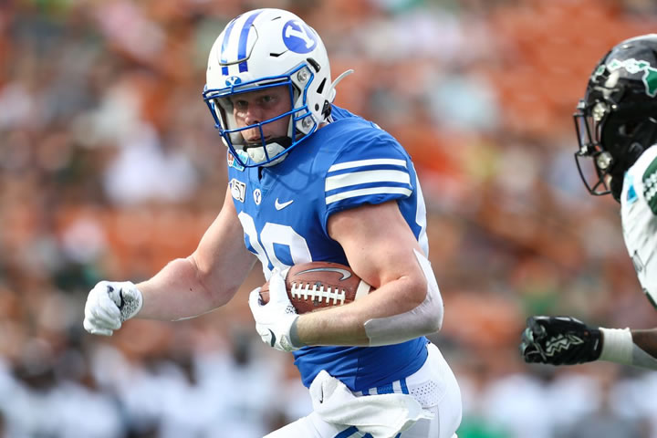 Obviously, my ranking of a player like this coming off a major injury has to depend on what his medical says. Without any additional information on how his recovery will continue to go and me solely evaluating what I see on film, Bushman deserved to be mentioned here in this very weak tight-end class, once you approach the double-digits. He has a natural feel for the position, puts in great effort as a blocker and catches pretty much everything thrown his way. If healthy, he at least should be a high-quality number two. And was he coming off that 2019 season, he would have probably been a day-two pick, just because of how effective he was at BYU.