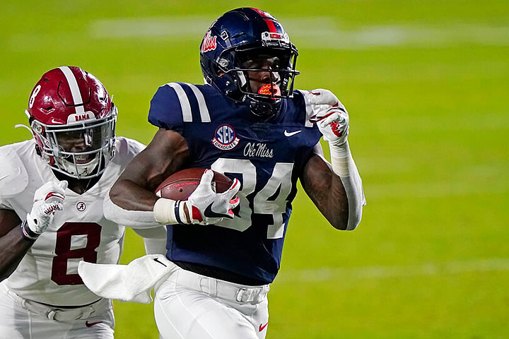 Just a two-star recruit back in 2016, Yeboah spent the first four years of his career at Temple, where he only caught one pass as a freshman, before transitioning from wide receiver to tight-end. While his numbers slightly increased all three seasons, he barely cracked 500 combined yards and six touchdowns (with five coming in his last year there). Yeboah transferred ahead of the 2020 season, originally committing to Baylor, to reunite with the coach, who once recruited him in Matt Rhule, but then changing his choice to Ole Miss, when Rhule decided to coach the Carolina Panthers instead. His one year with the Rebels however, he set career-highs with 27 catches for 524 yards and six scores, averaging 19.4 yards per grab, in only eight games.
