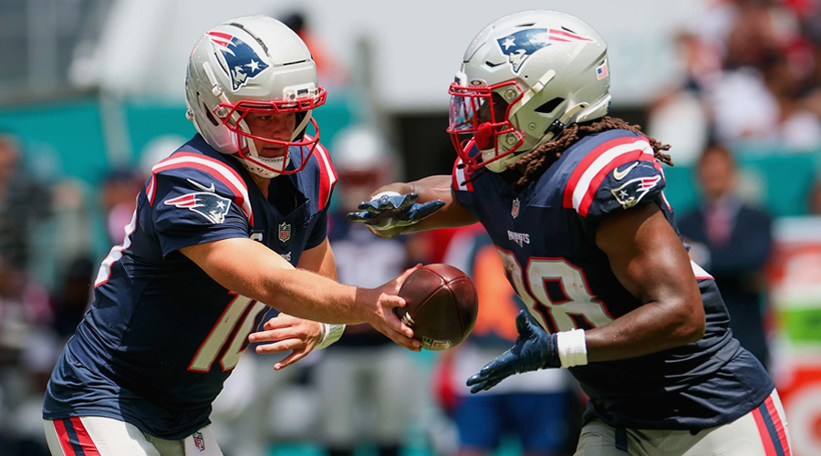 For some teams – and offense in particular – you can say that it’s been a tell of two halves for them in certain games or how they’ve performed against different opponents so far. I don’t believe there’s another group where that difference in efficiency between how they function through one avenue compared to the other is this pronounced. Even if you make it more basic and look at runs by running backs, this team is averaging just 3.5 yards per carry and only four of their 117 attempts have gone for 15+ yards (3.4%). What’s troubling about that is the fact they find themselves in plenty of advantageous looks to run the ball against. On several occasions they’ve found themselves in situation with an even number of blockers as defenders in the box, without taking the runner or quarterback Drake Maye, who is a threat himself to pull the ball, into account even. And still, either they’ll let a linebacker just run through on a draw play, one of their guys up flat-out loses or their running backs fail to slice through creases that are there, because they either lack the vision (Antonio Gibson) or burst to get moving downhill (Rhamondre Stevenson). Combined with that is the two veteran runners having already fumbled five times combined. Although he has yet to flash his explosiveness in regular season action, second-round rookie TreVeyon Henderson has the dynamic skill-set and ball-security fundamentals to become a bigger factor as he receives more opportunities.