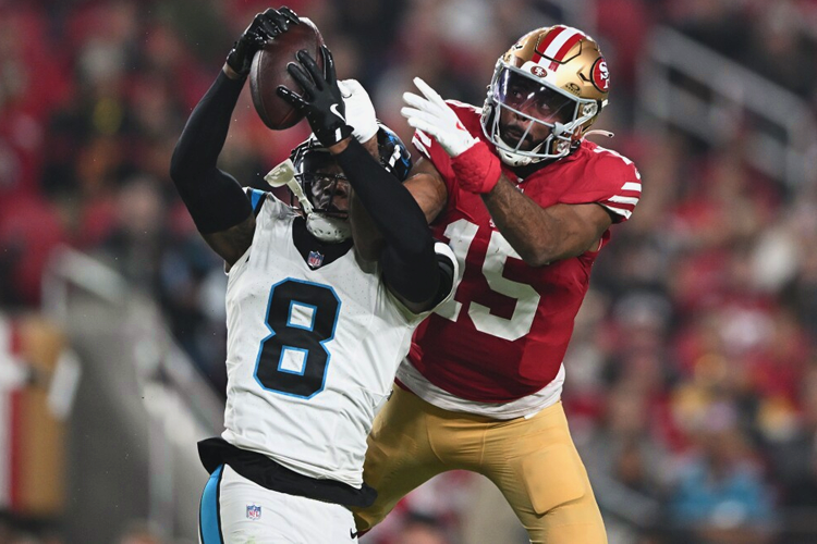 Coming into this past week, Carolina ranked in the bottom-ten in overall blitz rate (25.6%) and were also just outside the top-20 in stunt rate (14.9%). You can say that sort of coincides with the lowest pressure rate in the league as a unit (21.4%), but I’d say that they simply don’t have the horses to affect opposing quarterbacks with their defensive front on a consistent basis. And yet, they’re now somehow up to 15th in total success rate allowed (44.3%). Part of that has been Derrick Brown and the beef they have on the defensive interior, while having that cover-three structure behind it, to not allow opponents to stay ahead of the chains with their run game. Yet, when they’ve gotten to more obvious passing downs, for as much zone coverage as they run, they’ve rarely just stuck with the pre-snap picture and allowed quarterbacks to pick them apart. According to Fantasy Points Data, Carolina is right at the tops of the NFL with a disguise rate of around 45%. And it’s not necessarily like they draw up some kind of exotic Steve Spagnuolo-esque coverage rotation, where three defenders completely shift their landmarks once the play has started. However, as we’ve moved to more of a pure progression world for these passers around the league, where they don’t necessarily just key the safeties as they take the snap and if one buzzes down, that offers a solution for where to go with the ball, or at least allows them to cut off one half of the field, simply having defenders in spots where they’re not anticipated, often ends up being more effective than trying to throw the kitchen sink at guys, since they’re not even really trying to process *all* the information, but rather just try to attack space. Plus, of course then you have a hyper-aware and smart player like Jaycee Horn, who never seems to get caught covering grass, but rather is actively looking for work and had a pair of incredible picks against the 49ers a few weeks ago. Only five defenses have recorded more than interceptions than the Panthers (13) and those extra possessions, with how they want to operate offensively, have often put them in the driver’s seat.