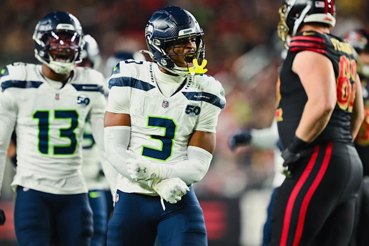 While I didn’t want to opt for such an obvious candidate like Rashid Shaheed on offense, choosing Holani wasn’t a particularly difficult decision. Defensively, my mind went a few different ways, for a unit that is just loaded with talent at all three levels. I ultimately wrote down Drake Thomas’ name, because he’s been a lesser-known figure, who emerged as an energizer bunny for that group this year. After more than 90% of his total snaps over his first two years as a former undrafted free agent in Seattle came on special teams (just 47 on defense), he was one of eight players who logged more than two thirds of defensive snaps this regular season. He did post a fairly high missed-rate (17.3%), but that‘s because of the way he’s constantly flying around the field and can trust his buddies to clean up for him. The biggest improvement for him this season and why he’s become a constant in their lineup, to me, has been how much quicker he decipher passing concepts and how quickly he redirects in order to contest nearby receivers or corral them immediately. He’ll often end up matched against a running back working to the flats and have chances to deliver splash hits to make those completions in the quick game feel like hard-earned ones. In each of the Hawks’ two playoff games, he logged three “defensive stops” and previously, he ripped the ball away from Christian McCaffrey for a key interception when they were in a week 18 game at San Francisco that was a lot closer on the scoreboard than it actually felt. And he has yet to be charged with a touchdown in coverage.